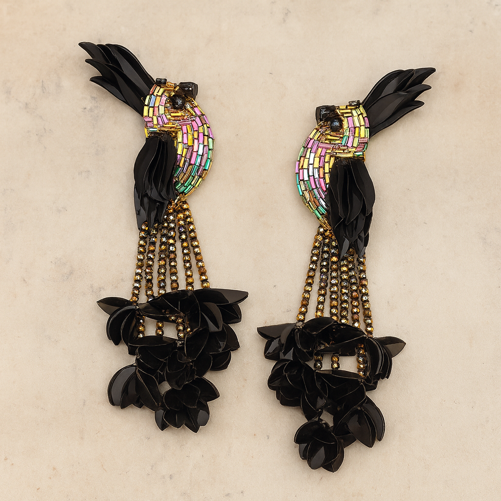 Channel the exotic allure of the tropics with our stunning Bird of Paradise Earrings. Hand-beaded to perfection, these earrings feature intricate detailing with seed beads and sequins, bringing the majesty of the Bird of Paradise flower to life. Designed to make a bold statement, their khaki tones exude subtle elegance while maintaining a unique, nature-inspired charm.