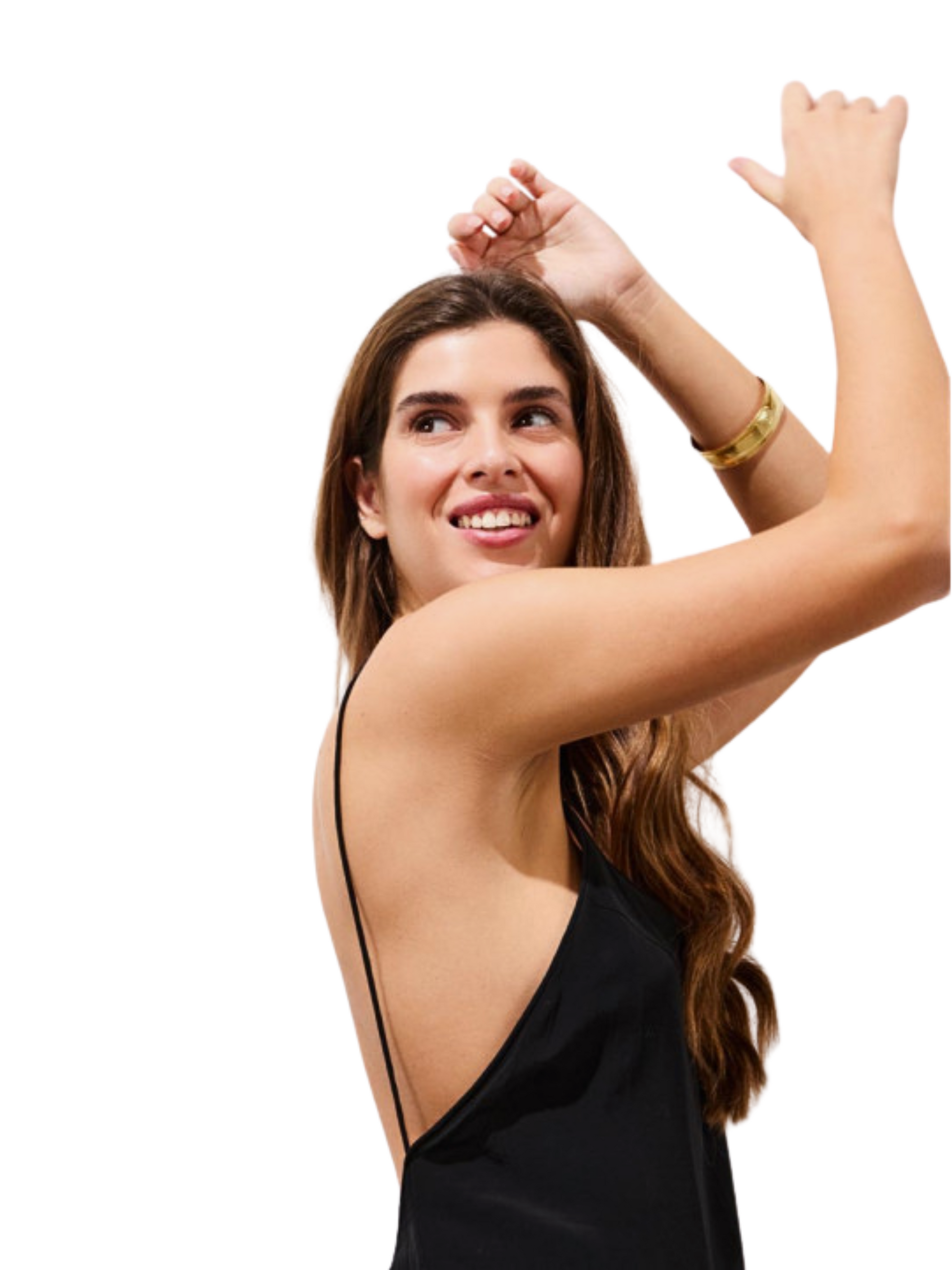 BLAKE is a long halter neck dress designed to follow the body with fluidity and ease. Its V-neckline creates a balanced silhouette, while the plunging open back reveals the skin with refined elegance.