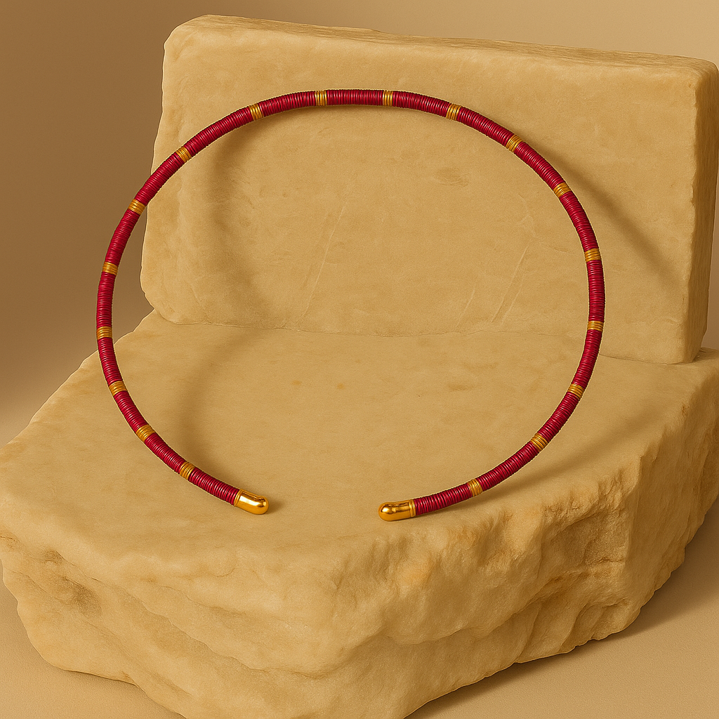 Material: Bronze plated in 24k gold, Werregue palm, and golden thread.