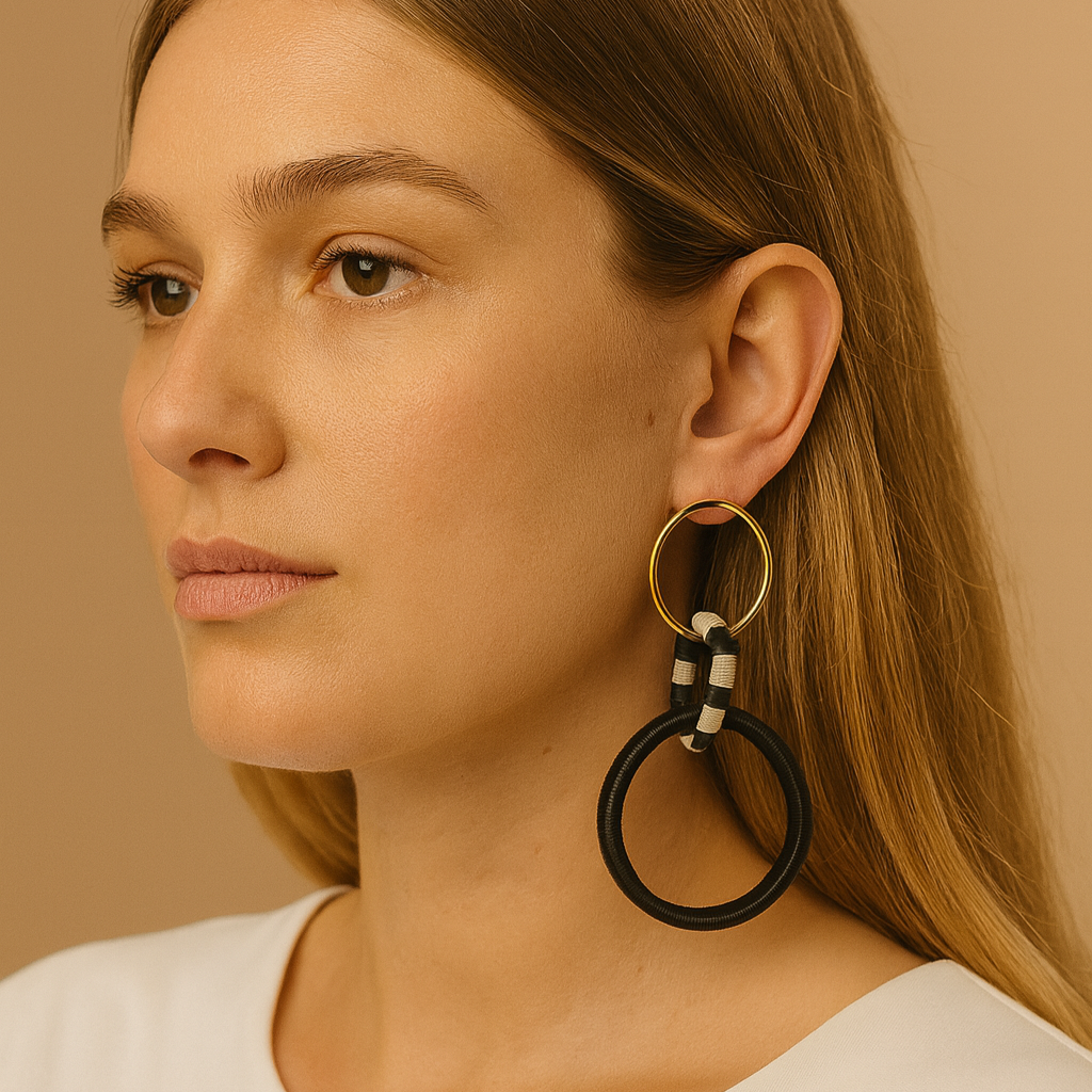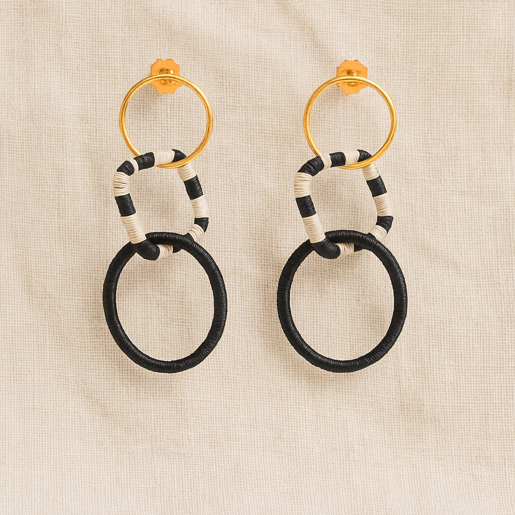 Material: 24k gold plated bronze with natural fiber threading from werregue palm.