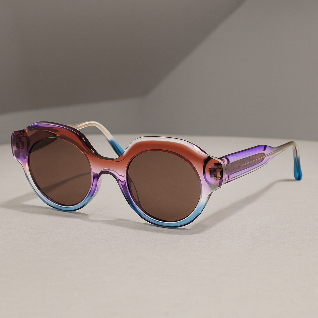 Flower Collection is inspired by nature. The Flowers develop the theme of the inside-out: one frame inside the other. Two or three acetates with dissimilar color are combined to achieve this curious aesthetics. The colors and soft curves of these models remind those of a blooming spring; different acetates combine and overlap with each-other like petals of exotic flowers.