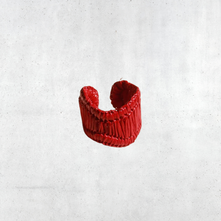 Material: Bronze plated in 24k gold, Werregue palm, and golden thread.