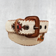 Celebrate heritage and artistry with this exquisite handmade belt, crafted using traditional Guatemalan embroidery techniques. Woven in vibrant silk and backed with supple leather, each piece is a testament to time-honored craftsmanship. The belt is finished with meticulous leather stitching, adding durability and refined detail.