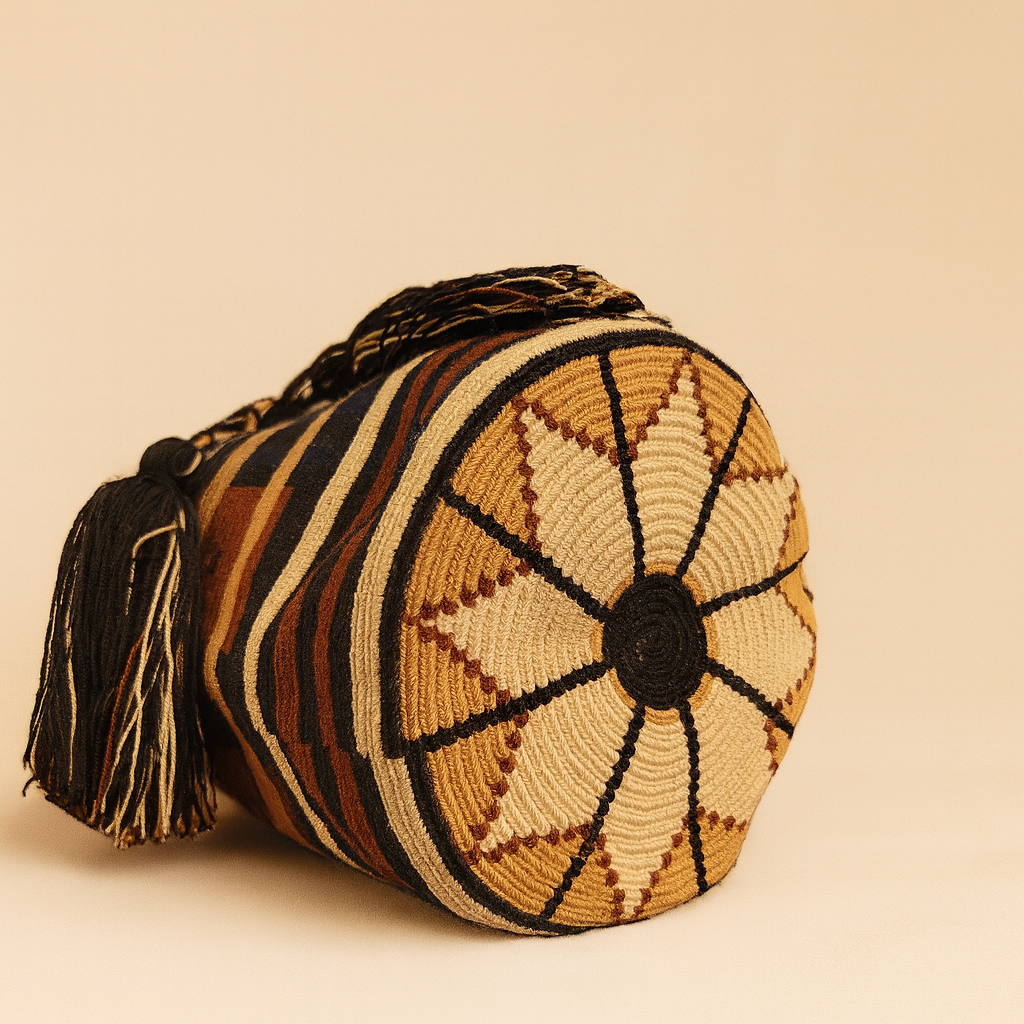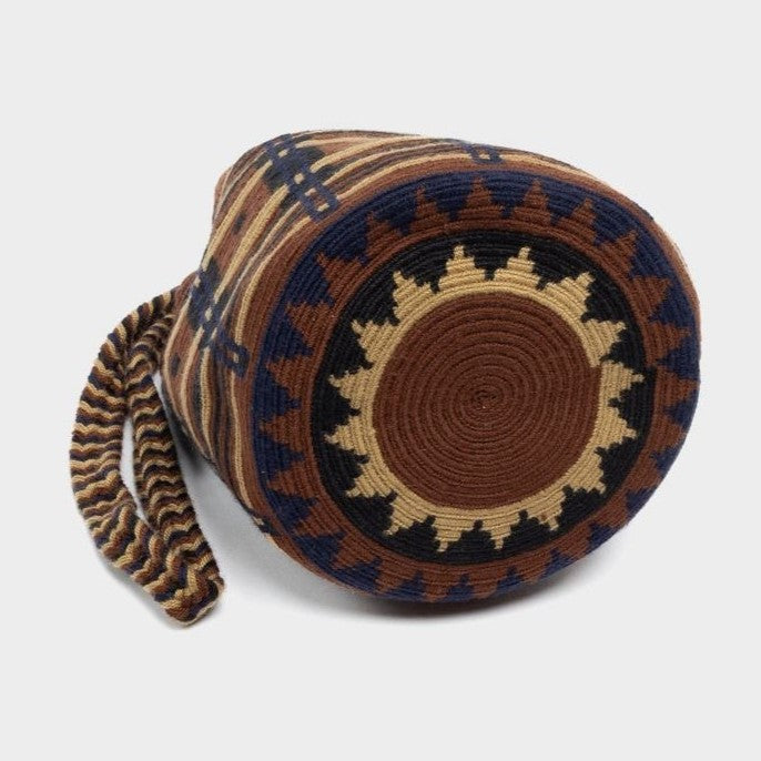 - Crocheted by Wayuu artisans with a pull closure finished with pompoms.