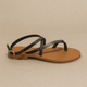 Minimalist and versatile, these flat leather sandals are designed for both comfort and timeless style. Featuring a between-the-toes strap and elegant crossed straps, they offer a secure fit with a buckle and ankle closure.