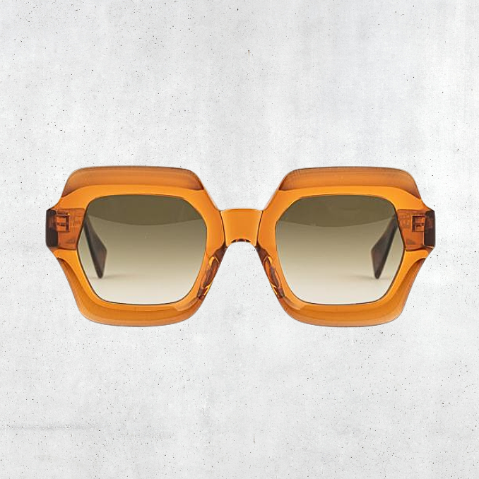 The Lupe frame is a bold shape with a matt finish on the upper side and a play of volumes inside the front.