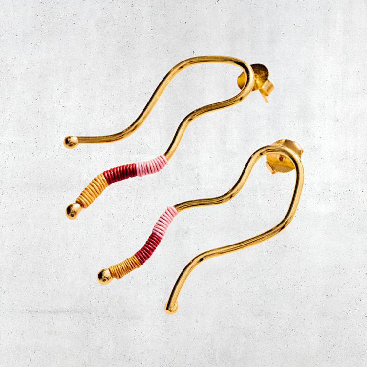 Material: 24k gold plated bronze with natural fiber threading from werregue palm.