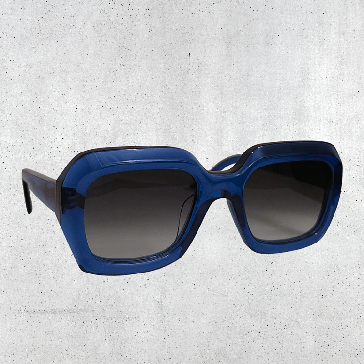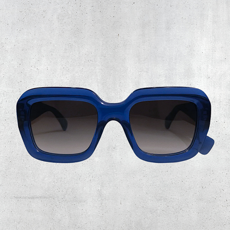 Transparent blue acetate produced in Italy.