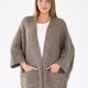 Handcrafted in pure wool, it drapes with a generous silhouette and deep patch pockets — a cocoon of warmth, ease, and understated elegance.