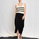 Midi skirt made of 100% linen fabric with a “crinkle” look. In an “envelope” pattern, it hugs the silhouette while discreetly revealing one leg when walking. It fits on the waist and closes at the back with a zipper.