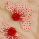 - Composition: Glass beads, silk organza, gold-plated brass stem.