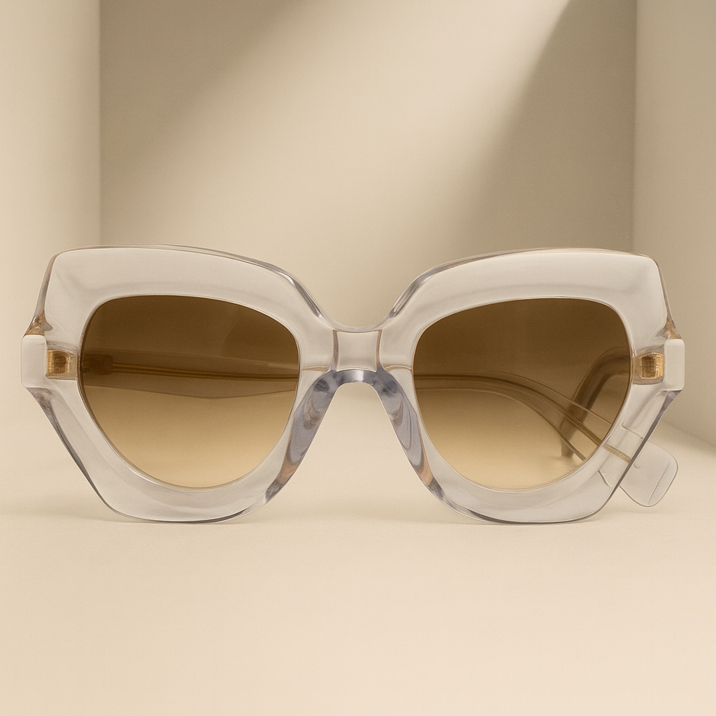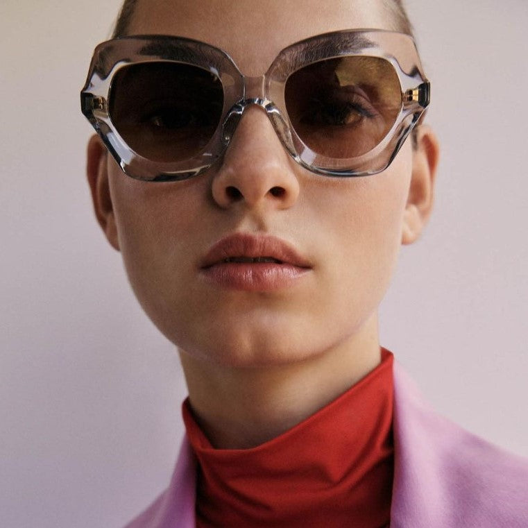 Rita, chunky Geometric front with inverted curved bevels, with a 70’s look mixed with a contemporary feel and a nice oversized fit.