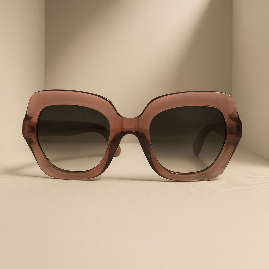 Rita, chunky Geometric front with inverted curved bevels, with a 70’s look mixed with a contemporary feel and a nice oversized fit.