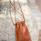 Sleek leather pouch with drawstring straps.