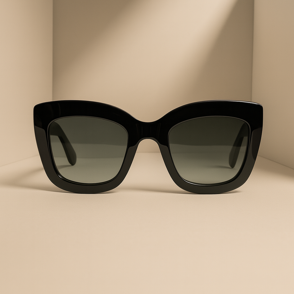 STAR is the cat eye shape. Bold and smooth surfaces and a play of volumes inside the front Mix of finishing on temple.