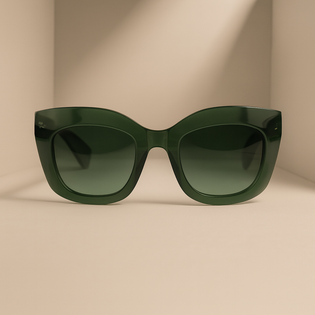 STAR is the cat eye shape. Bold and smooth surfaces and a play of volumes inside the front Mix of finishing on temple.