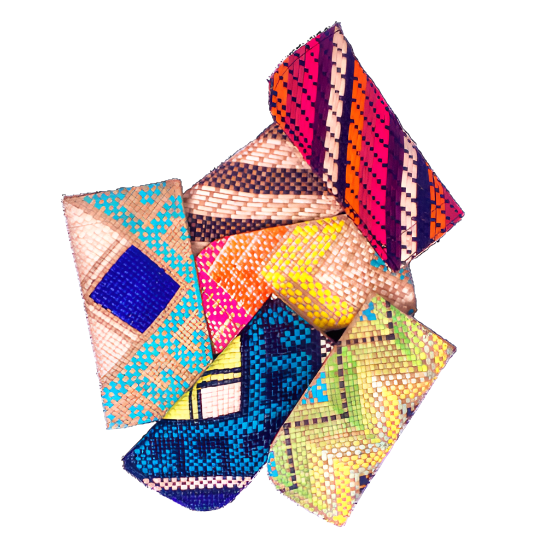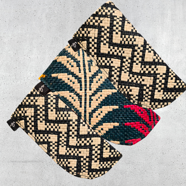 - Design: Long clutch crafted from woven wild grass and palm leaves